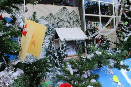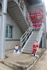 Nội dung trang trí: trang trí hang đá và cây thông Noel.